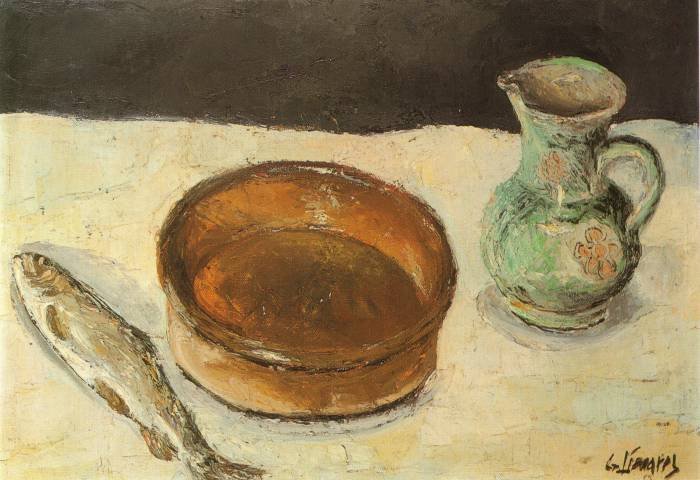 Hay una gran pintura "confiada" a este joven que se sitúa en el expresionismo con una carga de color muy grave y sustanciosa. Su pincelada busca siempre, y casi siempre encuentra, ese lugar exacto donde posar para decir con las palabras justas, aquello que el pintor quiere que sepamos. Los temas que trata son robustos y cada cuerpo tiene allí plena conciencia de su peso específico. Figura y paisaje son tratados con la misma soltura de procedimiento, y todo indica que nos hallamos ante la obra de un pintor que pinta en serio. Si algún reparo puedo hacerle a esta obra es para que "gravedad" no se confunda con "oscuridad" porque advierto en ella cierta inclinacion a oscurecer los fondos y a llevarse las figuras por el negro adentro. En los pequenos cuadros, donde se respira un ambiente más diáfano, su pincelada luce en toda su expresion extraordinaria.