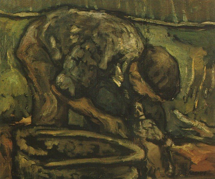 Y no es que esté mal esa referencia de sus raíces, por otra parte con toda seguridad sentida, y que además ha conseguido expresar plásticamente con una fórmula que parece del gusto de todo el mundo, críticos y público. Lo que pasa es que a mí, que conozco a Linares de muy antiguo, me daba la impresión de que la reiteración de ese trabajo nos estaba privando de una obra de más amplio recorrido, de mayor complejidad y ambición. Tanto si incide en la misma temática campesinas como si aborda cualquier otra. Una impresión basada en el conocimiento de sus cualidades de pintor, de sus inquietudes, y de ejemplos que de vez en cuando suele ofrecer. Por eso celebro que haya declarado, refiriéndose a algunas obras de esta exposición: “Estoy retomando cosas que había hecho hace muchos años pero con una depuración de estilo y una simplificación de la forma de hacer la materia”, y que apunta aquí “para que el público tenga una referencia del camino que llevo”. Es, sin duda, una interesante expectativa.