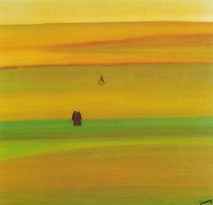 He visto moverse una lejana figura humana rodeada por un mar verde, estático. Viajo desde Cantón a Shenzhen, en un viejo autobús chino. Miro el paisaje, que se extiende hasta el infinito. Recorremos unas de las zonas más ricas en cereales. El espectáculo es maravilloso. Los chinos no dejan de cultivar ni un palmo de tierra. Otra figura humana levanta su cabeza y puntea –un leve brochazo ocre...- aquel lienzo verde que cambia, suavemente, de tonalidad –hasta el amarillo- mientras la vista lo recorre desde la orilla de la carretera al horizonte lejano. “Esto parece un cuadro de Linares”, me digo. Es curioso: acabo de descubrir que Manolo Linares mira a Asturias tal como un viajero contempla el paisaje que se extiende Cantón y Shenzhen, al sur de la China.